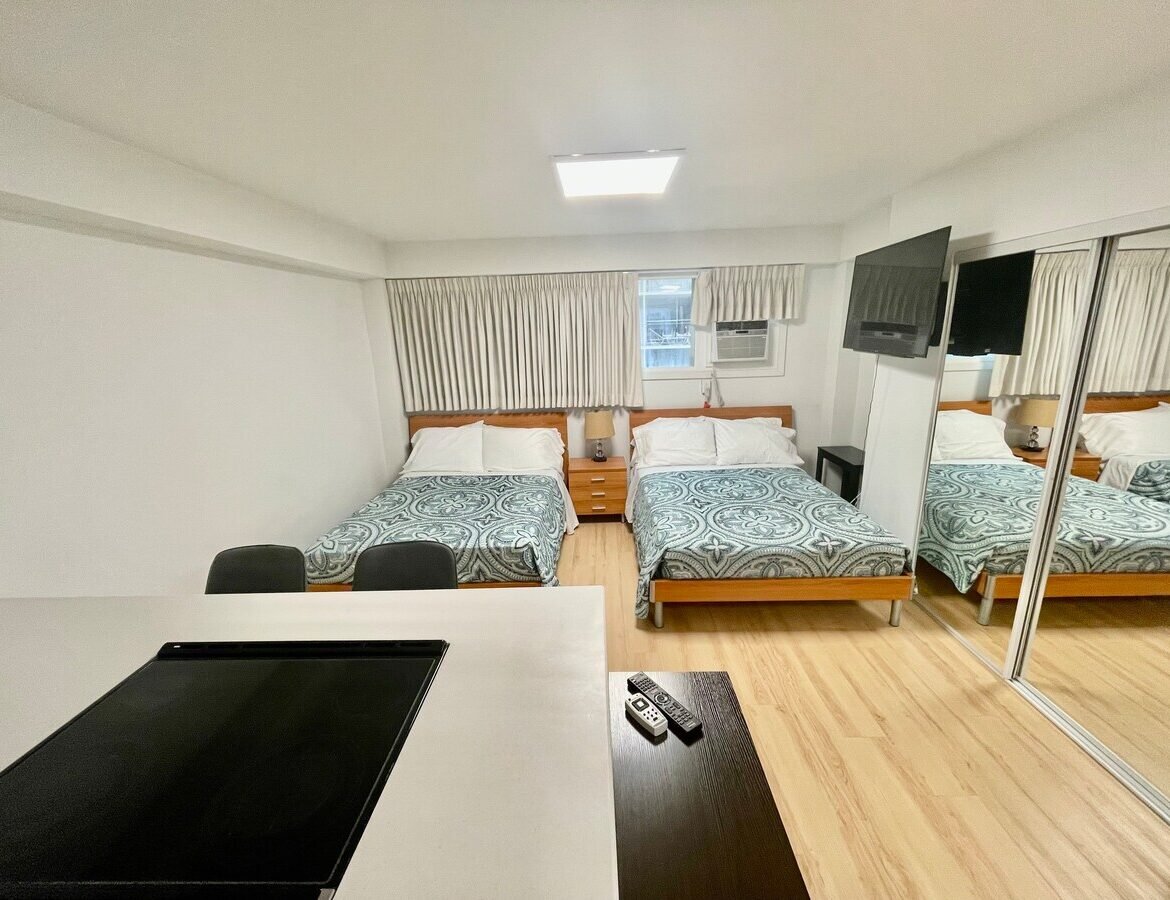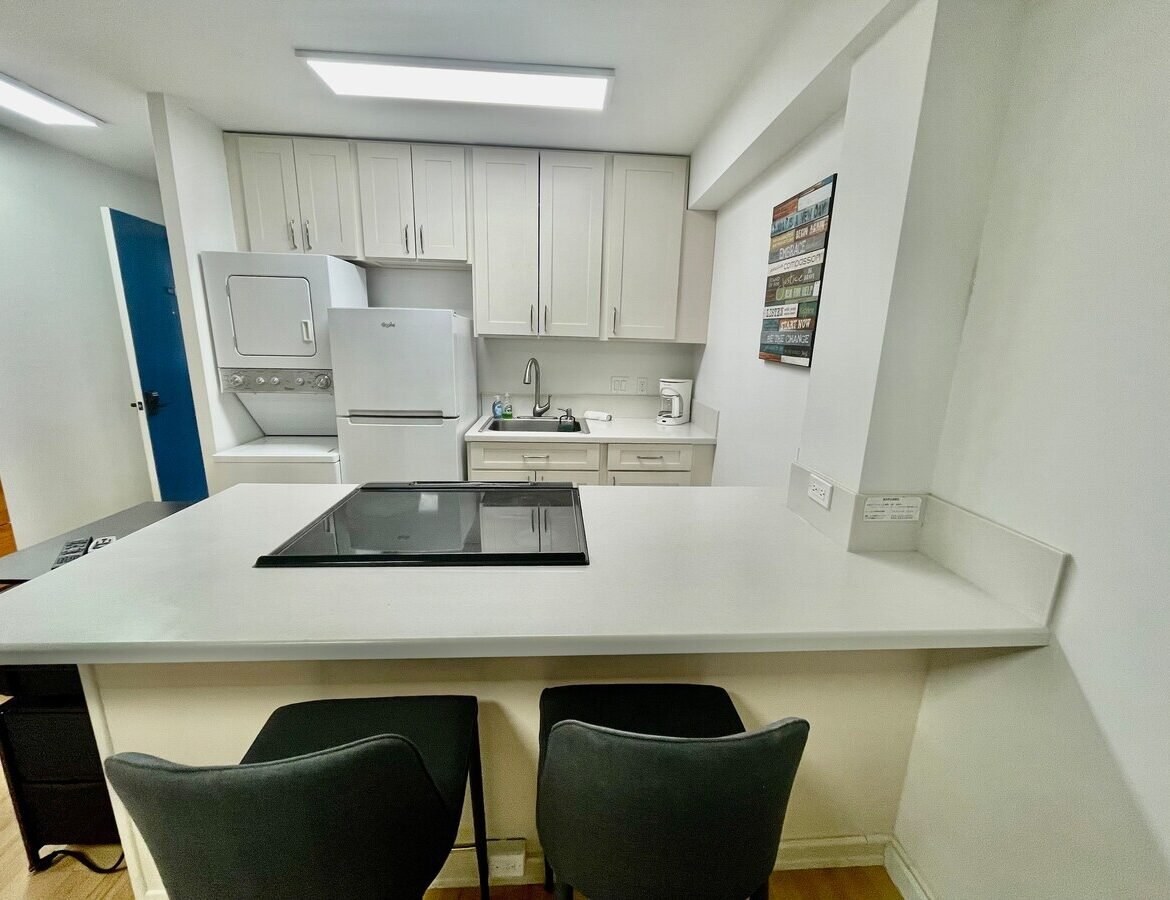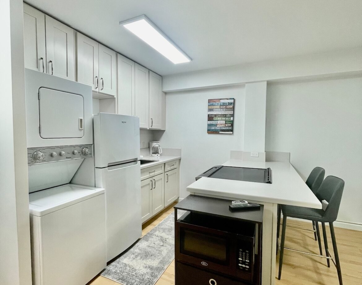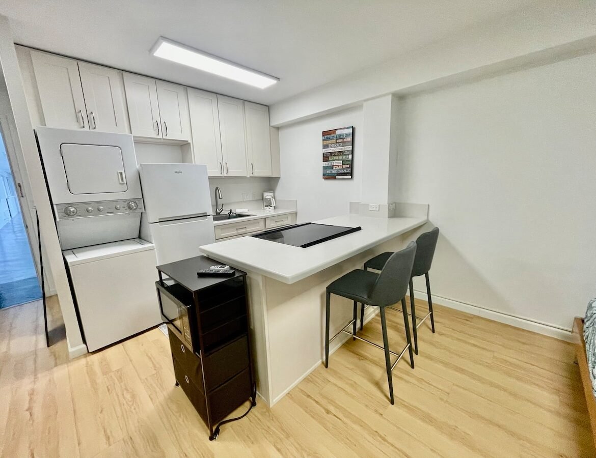 Fully furnished with two full size beds, perfect for 3-4 people, AC, washer & dryer in the unit, and newly remodeled full kitchen with everything you need.